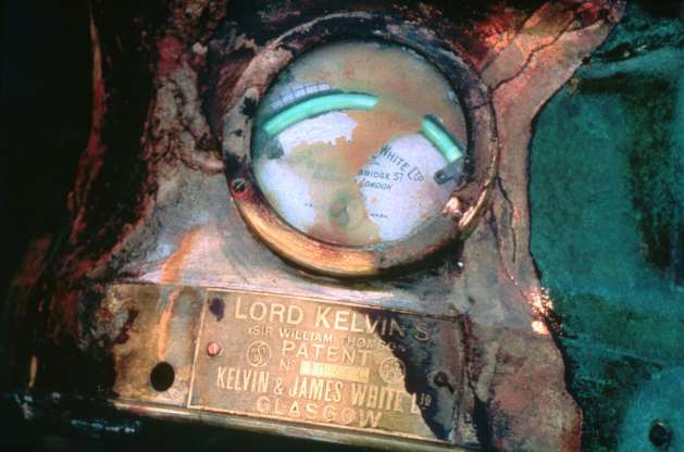 | An electric meter used for the compass light of the Titanic was recovered from the shipwreck during the 1985 dive. |